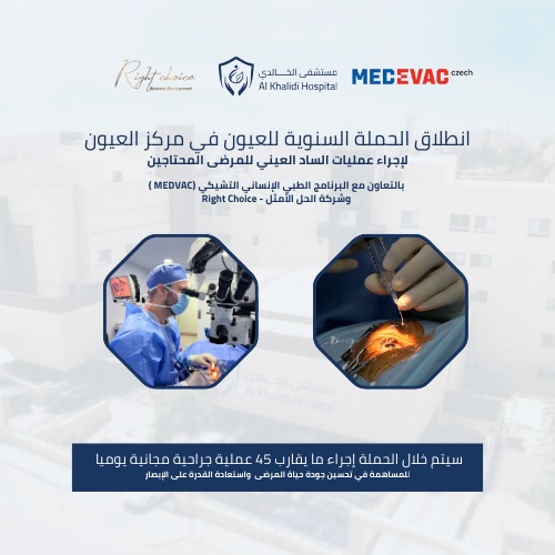 نعلن في مركز العيون – مستشفى الخالدي عن انطلاق الحملة السنوية لعمليات العيون، لإجراء عمليات الساد العيني للمرضى المحتاجين.